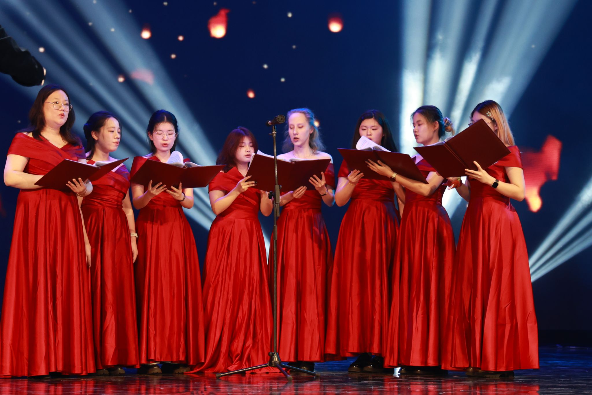 隨后,深圳北理莫斯科大學合唱團登臺亮相,為觀眾帶來了歌曲《燈火里的中國》。優美的旋律和深情的演唱,將觀眾帶入了一個充滿溫馨和希望的新年氛圍之中。合唱團成員們默契的配合和精湛的演唱技巧,贏得了現場觀眾的熱烈反響。