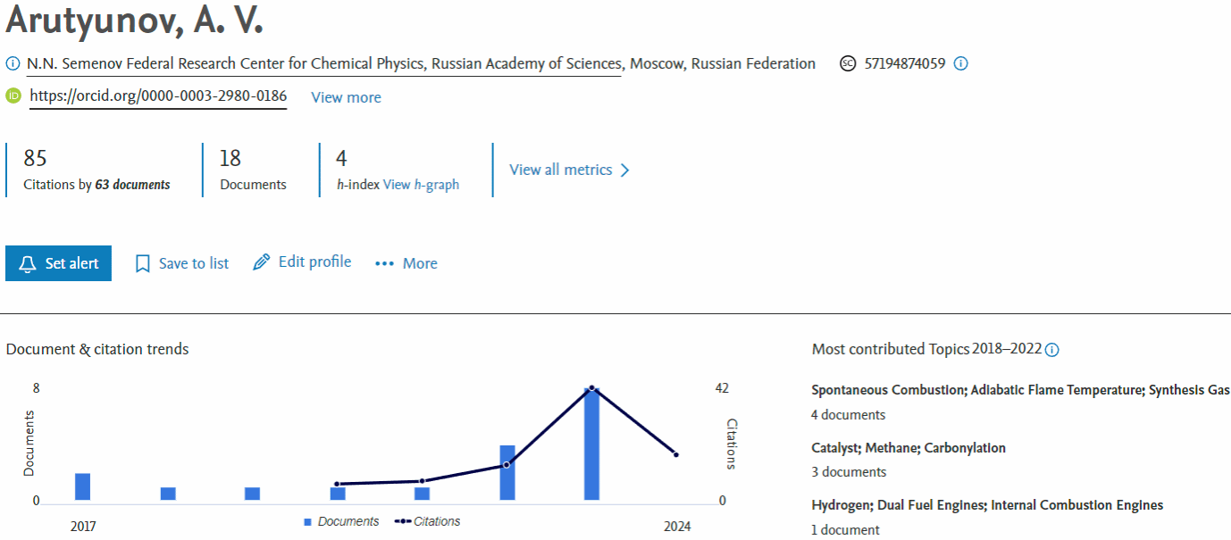 10.Vladimir Arutyunov, Andrey Belyaev, Artem Arutyunov, Kirill Troshin and Aleksey Nikitin. Autoignition of methane–hydrogen mixtures below 1000 K // Processes – 2022 – V. 1510(11) – 2177.DOI: 10.3390/pr10112177