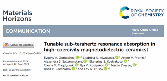 近日,深圳北理莫斯科大學材料科學系高級講師葉甫蓋尼·戈爾巴喬夫(Evgeny A. Gorbachev)以深北莫為第一單位,本人為第一作者,材料科學系教授列夫·特魯索夫(Lev A. Trusov)為通訊作者在材料科學領域國際著名期刊《Materials Horizons》上發表最新研究成果。文章題目為“Tunable Sub-Terahertz Resonant Absorption in High-Coercivity Magnetodielectric Ceramics”?!禡aterials Horizons》2024年最新影響因子為12.2,是材料、化學與工程領域公認的頂尖期刊(中國科學院大類/小類一區期刊)。