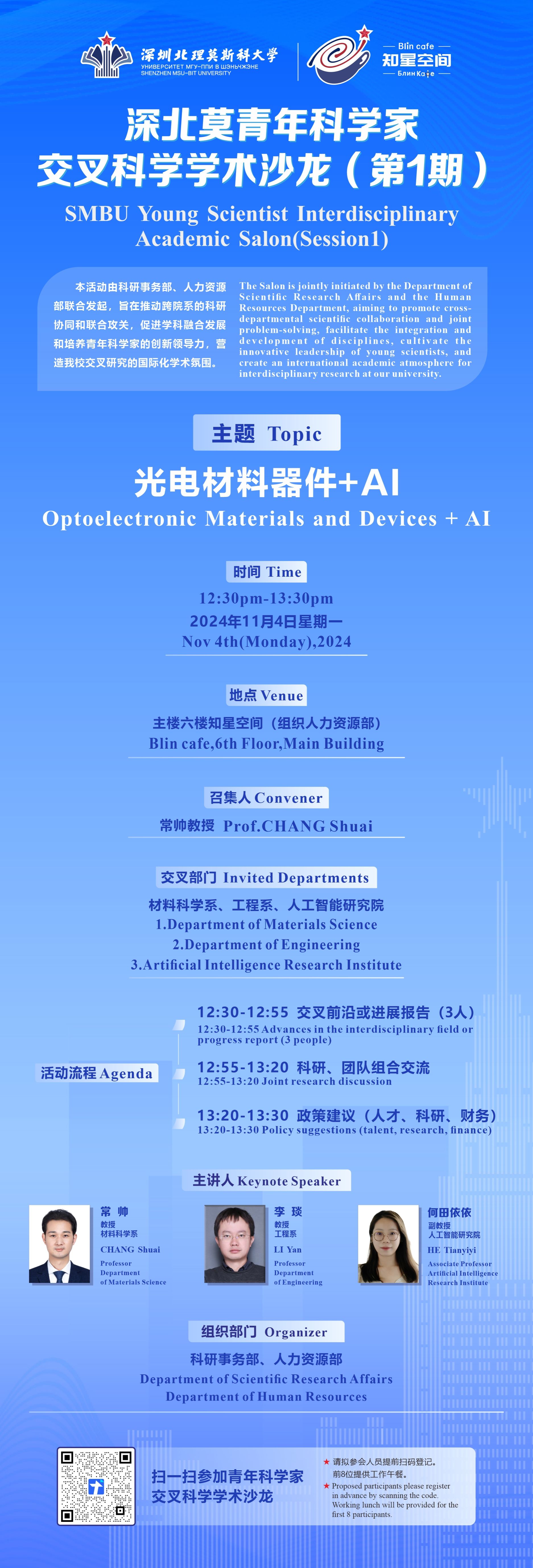 [講座預告]深北莫青年科學家交叉科學學術沙龍(第1期):光電材料器件+AI