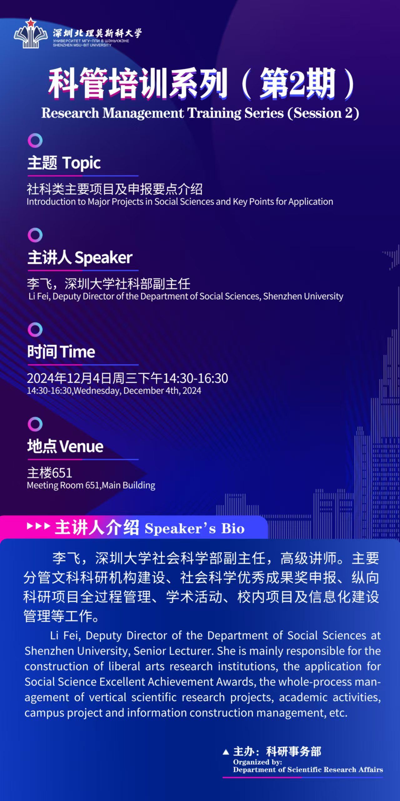 【講座預(yù)告】科管培訓(xùn)系列(第二期)——社科類主要項(xiàng)目及申報(bào)要點(diǎn)介紹