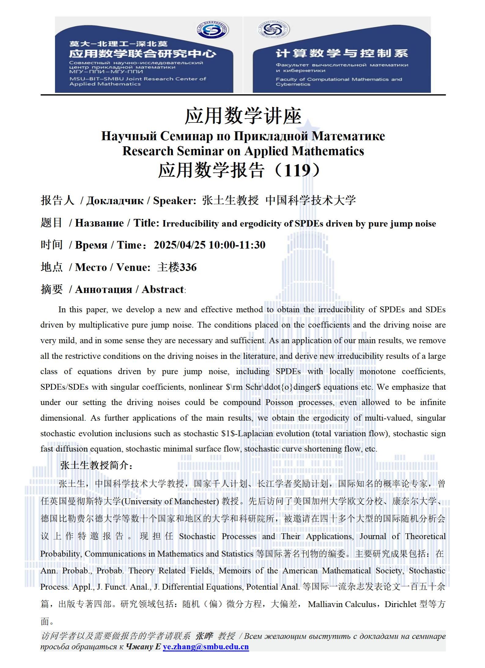 題目 / Название / Title: Irreducibility and ergodicity of SPDEs driven by pure jump noise