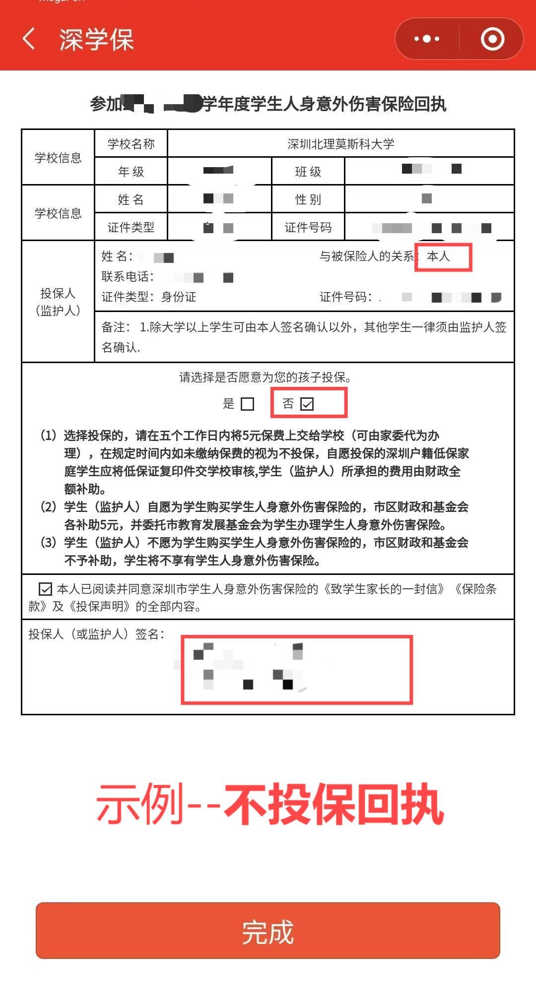 3.不投保學(xué)生,請(qǐng)務(wù)必保留回執(zhí)截圖(見示例)。