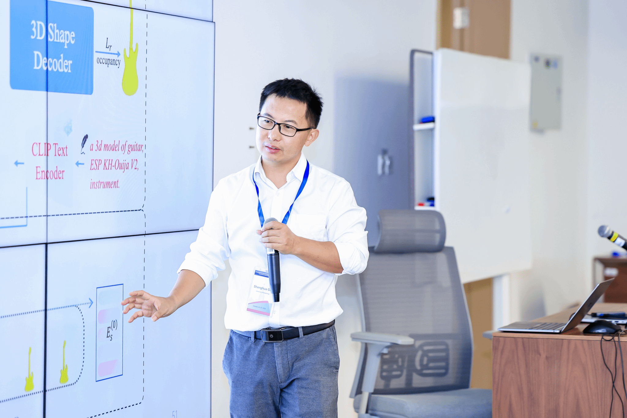 高盛華博士的特邀報告題目是“2D Gaussian Splatting for Geometrically Accurate 3D Reconstruction and its Applications”,給聽眾展示了一種新穎的2D Gaussian Splatting方法,用于從多視角圖像中幾何精確地重建輻射場,該技術(shù)在4D重建、人體重建、場景編輯等多個領(lǐng)域展現(xiàn)出廣泛的應(yīng)用潛力。