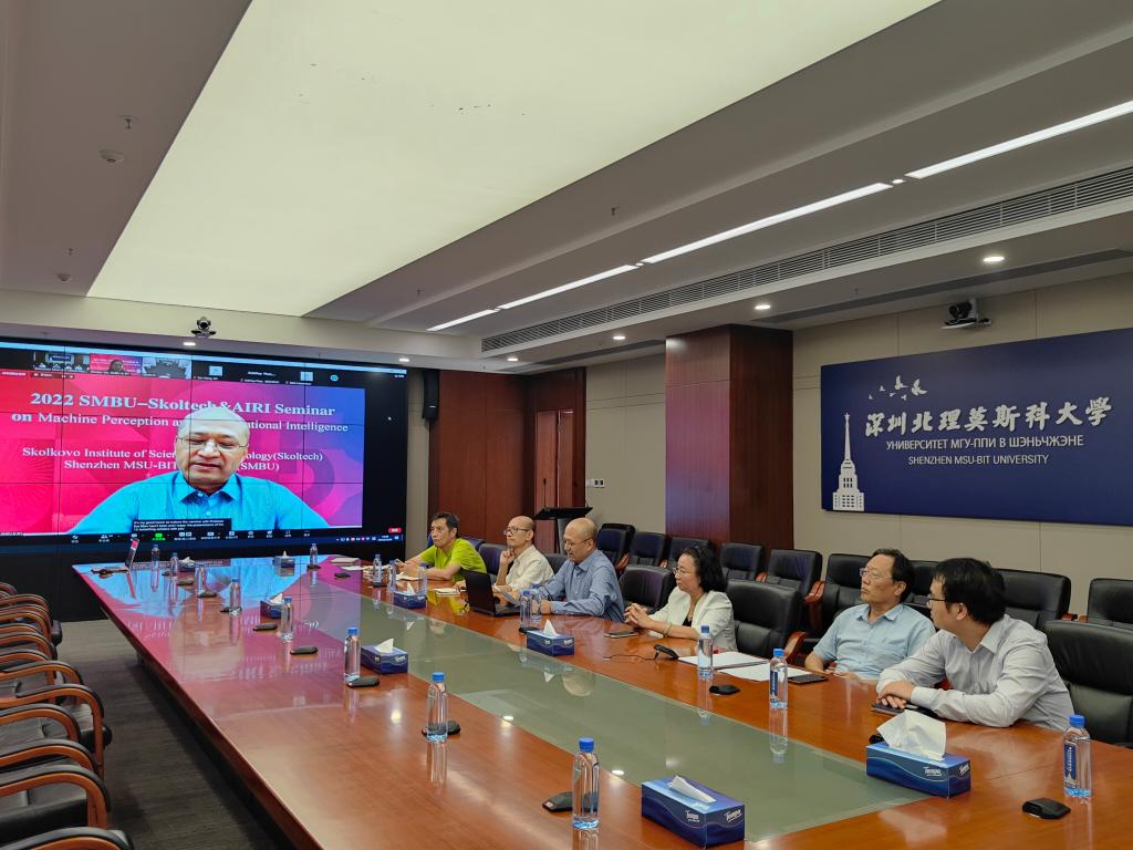 2022年10月28日,深北莫-斯科爾理工機器感知與計算智能研討會在線上線下同時舉行。此研討會是由中國深圳北理莫斯科大學(Shenzhen MSU-BIT University, SMBU)和俄羅斯斯科爾科沃理工學院(Skolkovo Institute of Science and Technology, Skoltech)共同舉辦的雙邊學術論壇,賈云得教授和Ivan Oseledets教授共同擔任研討會主席,裴明濤教授、Aleksandr Mikhalev 博士、吳心筱教授、Dmitry Dylov 教授擔任分組報告主席。本次研討會的主題是機器感知與智能計算,共邀請了12位來自俄羅斯和中國的學者做學術報告。他們的精彩報告給參會人員帶來了一場高端的學術盛宴。本次研討會共有線上和線下100多位學者參加,同時也進行視頻直播。