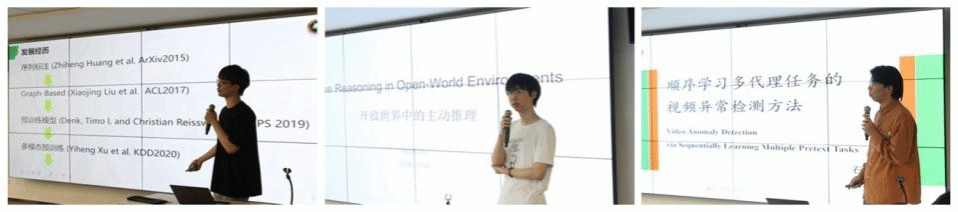在上午的論壇中,姚承唐同學在報告中介紹了一種稀疏點引導的三維車道線檢測方法;臧傳祺同學在報告中介紹了一種多模態問答數據中的因果關聯捕捉方法;李安琪同學在報告中介紹了一種基于數字服裝的版片表達、重建及重定向方法,實現了數字服裝的個性化定制。翟明亮同學在報告中介紹了Fast-StrucTexT,這是一個基于沙漏Transformer架構的高效多模態框架,可用于文檔理解,該方法實現在性能不下降的情況下顯著提升了推理速度。楊碩同學在報告中介紹了一種通過引入了概率分布函數來建模動作前景幀和邊界幀的概率,生成合理的偽標簽,幫助模型學習,極大的降低人工標注全部數據幀的難度。徐滿杰同學在報告中討論我們如何將主動推理的思想應用到開放世界的推理任務中。石辰睿同學在報告中介紹了一種基于代理任務難易程度的順序學習優化方法。