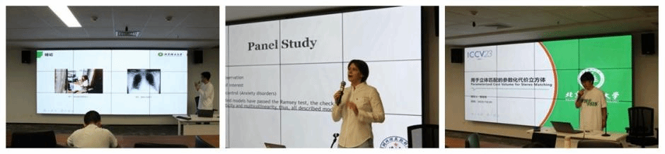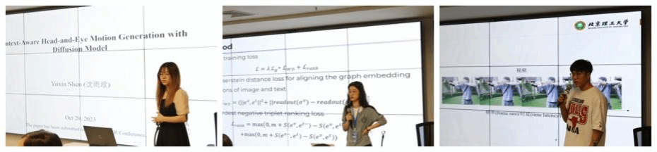 在下午的論壇中,沈雨欣同學介紹了眼動數據在人認知過程中的作用。沈洪宇同學從生成高質量醫療報告的現存挑戰出發,提出了一種基于記憶矩陣圖文匹配的醫療報告生成方法。田孟瀟同學指出圖文匹配任務中存在圖像和文本不相關實體對匹配過程的干擾,并提升了模型的語義對齊和分布對齊性能。Iaroslava Pravolamskaya介紹了對不同國家人群抑郁癥、焦慮癥的調查研究工作,指出國家可以通過救濟失業人群減輕國民患病的風險。劉恩齊同學介紹了一種事件相機數據預訓練,使得事件相機圖像可以與RGB圖像特征對齊的方法,提升了模型遷移能力。曾嘉禧同學介紹了立體匹配任務及將參數化代價立方體應用于立體匹配任務,提高了匹配的效率。李川皓同學介紹了基元的概念,并在工作中探索了視覺和語言的基元對組合泛化的影響,有效提高模型的學習能力。