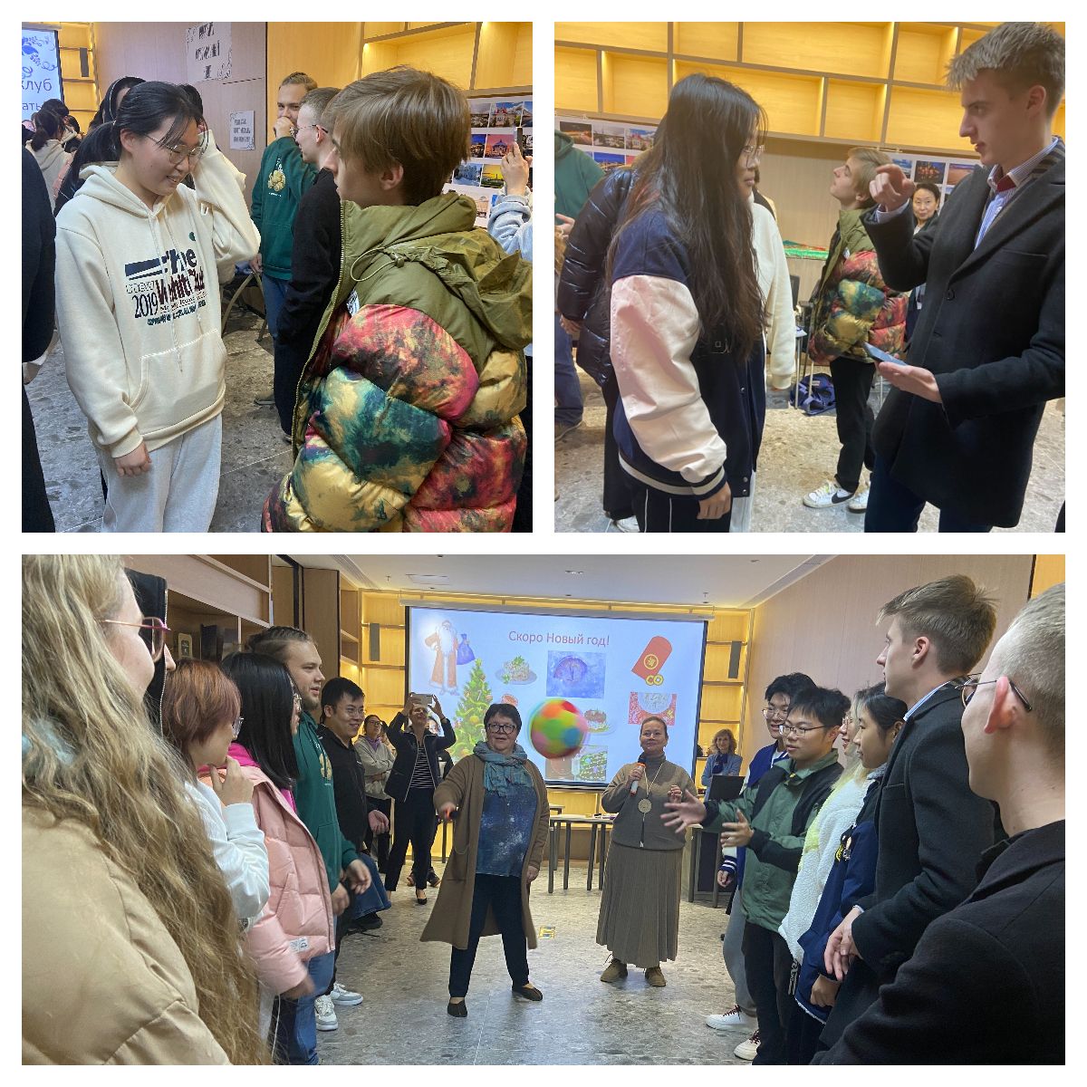 12月20日晚,由俄語中心組織的俄語角首場活動 ?Учить язык – значит открыть новое окно в мир? 在學校2C-101教室順利舉行。參加活動的主要為大學二、三年級本科生、國際學生及俄羅斯老師。