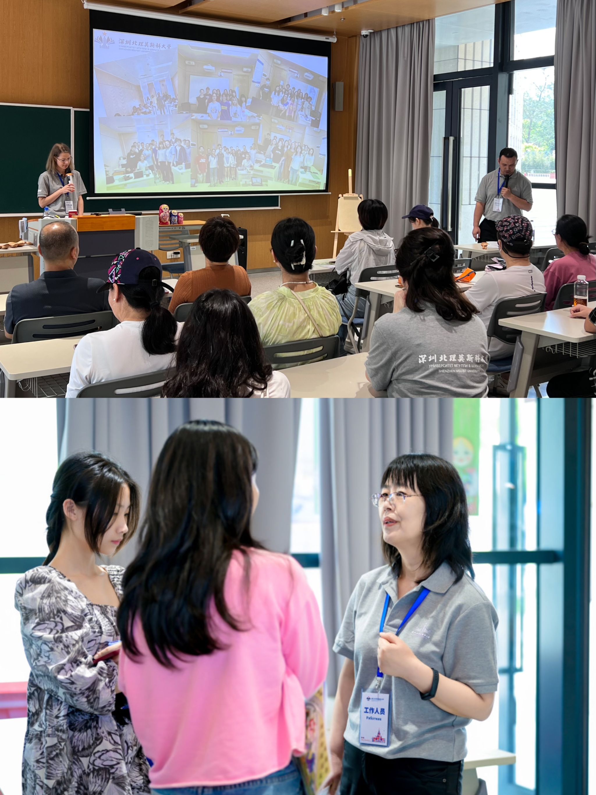 俄語中心主任古利多娃就俄語中心的工作進行了匯報。她介紹了中心幾年來成功實施的俄語教學計劃、教學特色,特別強調了一年級學生有機會赴莫斯科大學俄語語言文化學院學習俄語。俄語中心中方主任李小青解答了考生家長關于報考深北莫和在校學習方面的問題。俄語中心教師艾扎圖林和莎波瓦洛娃介紹了針對大一學生的俄語教學原則和方法。中方教師玉蘇甫和王蒙蒙在現場進行中文翻譯。