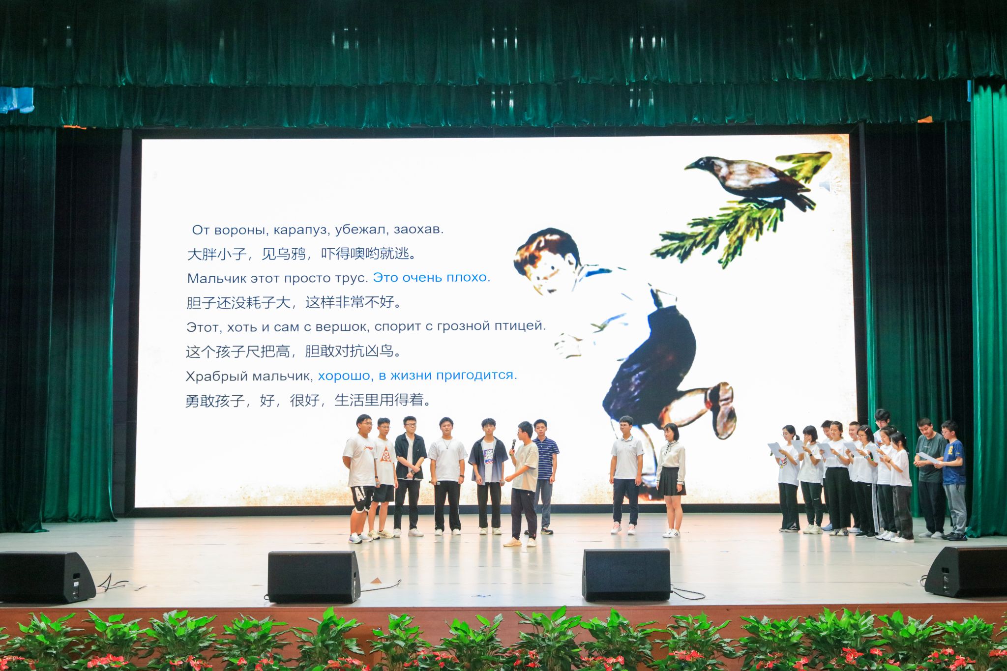首先亮相的是合唱節(jié)目——《學(xué)校教什么》。人一生都需要學(xué)習(xí),在中學(xué)、在大學(xué)、包括在工作中都需要不斷汲取知識(shí)。同學(xué)們用這首歌曲向與會(huì)觀眾展示了他們這一個(gè)月的俄語學(xué)習(xí)成果。