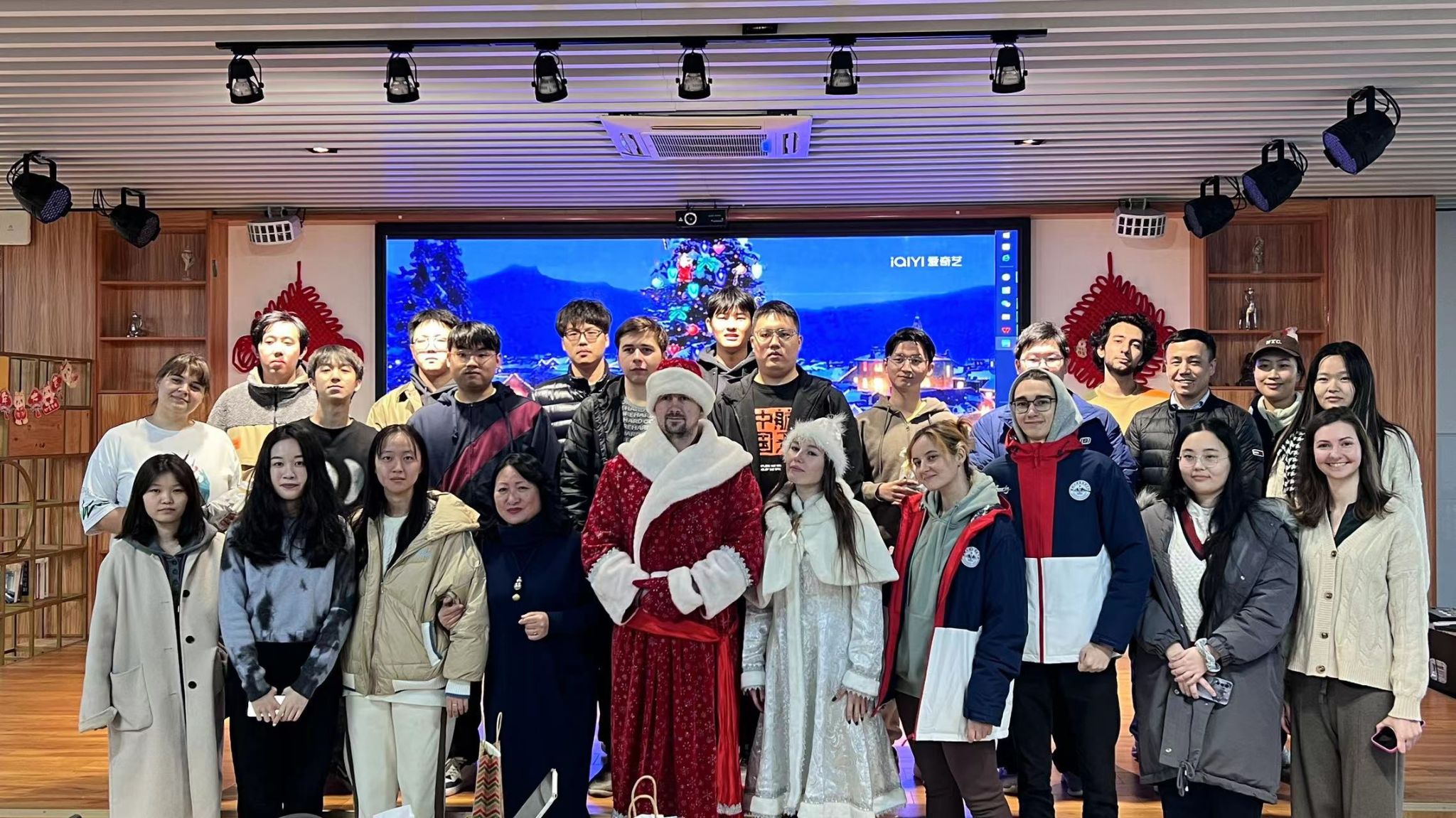 文化對話是聚會不可或缺的一部分。俄羅斯的研究生向中國學生介紹了俄羅斯菜肴的起源和制作方法。中國學生同樣分享了中國慶祝新年的傳統。美味的晚餐過后,同學們在語言國情知識競賽和其他比賽中嶄露頭角。晚會結束時大家感到了意外的驚喜:嚴寒老人和雪姑娘來到活動現場,給同學們送上了暖心的糖果。