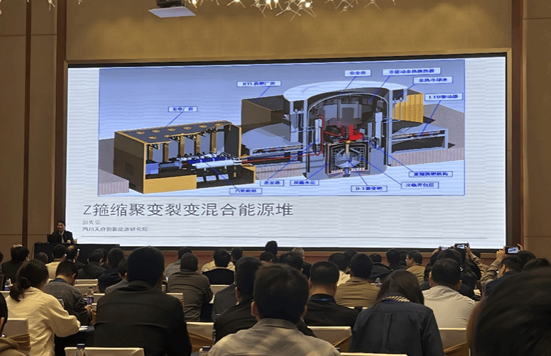 會上,四川天府創(chuàng)新能源研究院的彭先覺院士發(fā)表了題為《Z 箍縮聚變裂變混合能源堆》的前沿報告。報告聚焦于 Z 箍縮聚變裂變混合能源堆這一核領(lǐng)域關(guān)鍵技術(shù),全面闡述其發(fā)展脈絡(luò)、核心原理、技術(shù)架構(gòu)及創(chuàng)新突破。從 2001 年中物院啟動 Z 箍縮聚變研究起,歷經(jīng)靶研究、混合堆研究等關(guān)鍵節(jié)點,至 2008 年正式提出 “Z 箍縮聚變裂變混合能源堆”(Z-FFR)概念,再到如今完成大量理論與部分實驗研究,即將邁入工程驗證及演示階段,展現(xiàn)出我國在該領(lǐng)域的不懈探索與卓越成就。其基本原理基于 Z 箍縮驅(qū)動聚變單元(中子源)與深次臨界裂變包層(能量放大器)協(xié)同作用構(gòu)建百萬千瓦電站,各組件緊密配合、各司其職。聚變單元中 LTD 驅(qū)動器、聚變爆室與局部體點火靶、重頻換靶機構(gòu)有序運作,局部體點火靶在降低驅(qū)動器電流要求、保障工程可行性方面成效顯著;深次臨界裂變包層于燃料利用、安全保障、余熱排出等技術(shù)環(huán)節(jié)創(chuàng)新突出,有力推動了能源堆技術(shù)發(fā)展。