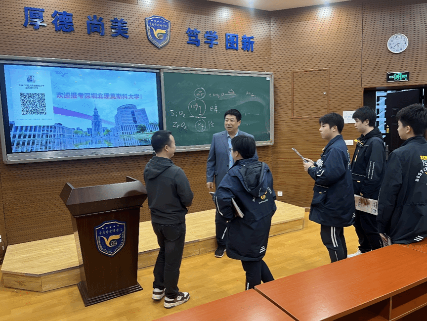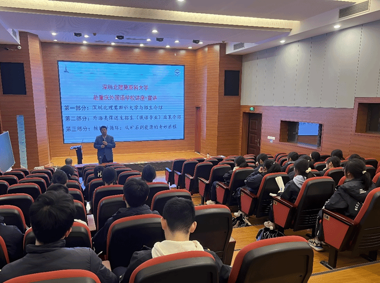 11 月 18 日,招生組抵達(dá)重慶外國語學(xué)校。張東翔教授再次登臺,為 40 名學(xué)生進(jìn)行了一場內(nèi)容豐富、生動形象的招生宣講和科普報告。同時,重慶招生組秘書李嘉莉在宣講會上詳細(xì)講解了深北莫 2025 年俄語專業(yè)保送生招生政策,為有意向的學(xué)生提供了寶貴的升學(xué)指導(dǎo)。