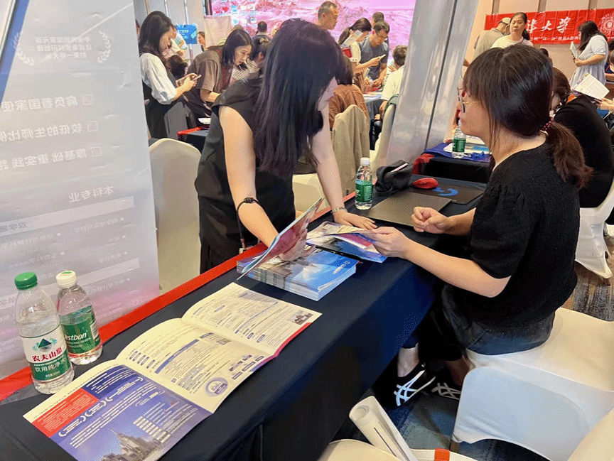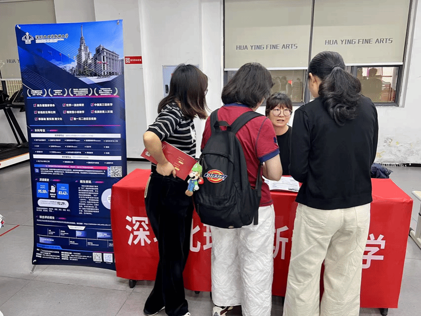 次日上午,招生組參加了在點化高考學校舉辦的 2025 全國高校重慶招生咨詢會暨志愿填報指導峰會。在這場匯聚了眾多高校的招生盛會上,深北莫的展位前人頭攢動。招生組充分利用此次機會,全方位展示學校的優勢與魅力,積極與考生和家長互動交流,為他們提供精準的報考建議。