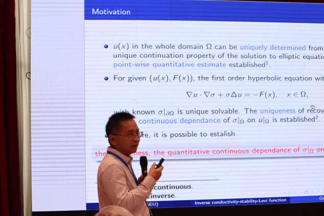 與會(huì)專家學(xué)者圍繞應(yīng)用和計(jì)算數(shù)學(xué)領(lǐng)域的研究及其相關(guān)領(lǐng)域的發(fā)展進(jìn)行深刻討論,包括神經(jīng)網(wǎng)絡(luò)導(dǎo)電成像問題、線性優(yōu)化問題、線性逆問題、代數(shù)問題等各個(gè)方面。會(huì)議期間共組織24場(chǎng)精彩的大會(huì)報(bào)告,參會(huì)嘉賓達(dá)百余人。