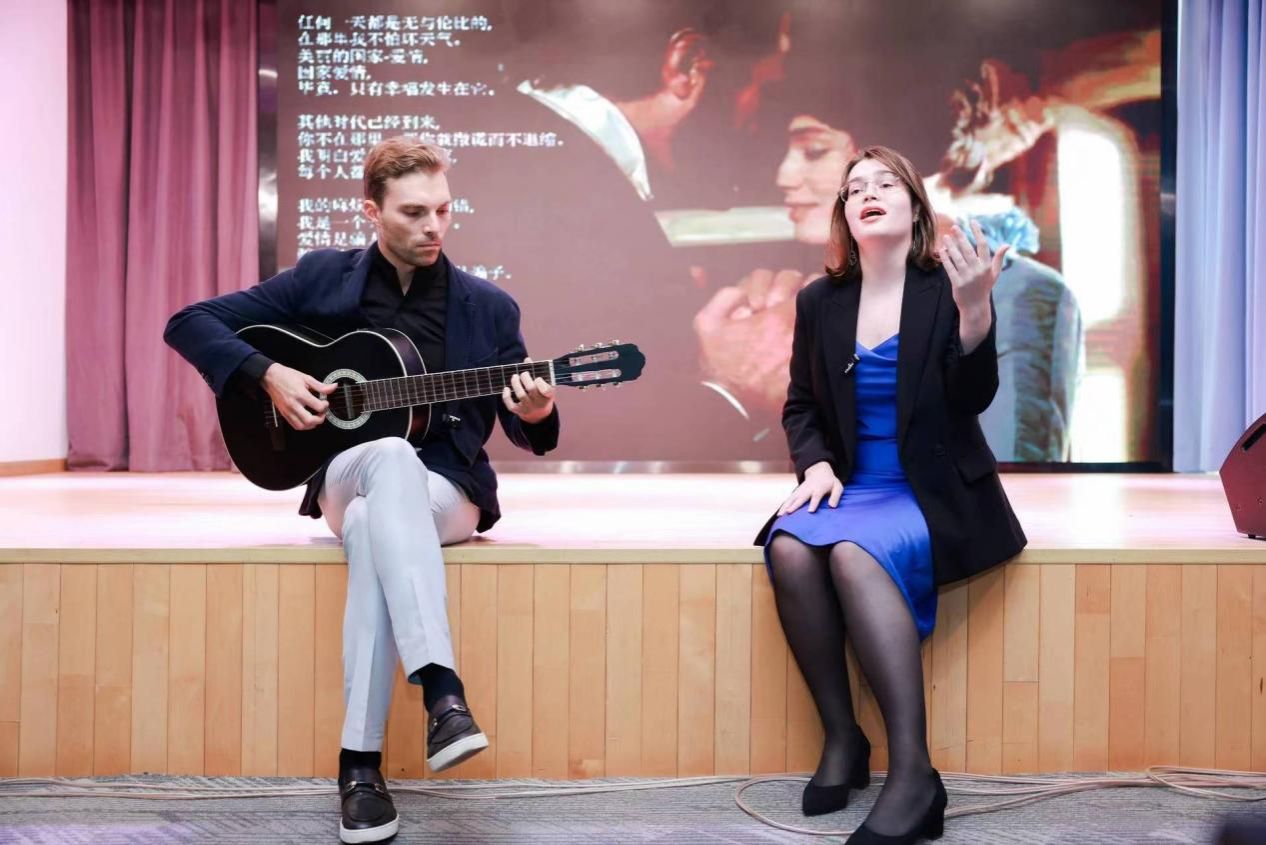 下午4時,一場“詩與浪漫曲”的藝術(shù)表演在禮堂315教室精彩上演,表演者們帶來了中文原創(chuàng)詩歌朗誦、俄羅斯歌曲還有琵琶演奏等節(jié)目,這些藝術(shù)表演跨越語言和國界,為觀眾演繹了多元文化的魅力。