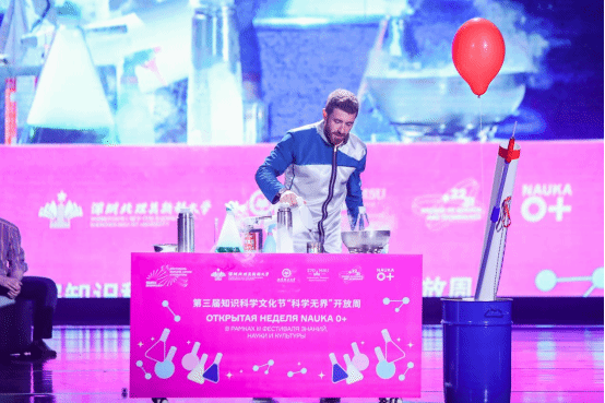 李和章、伊萬琴科、古謝夫、卡爾梅科夫、戈爾布諾娃和李相宏共同登臺,通過別致的科學實驗,宣布深圳北理莫斯科大學第三屆知識科學文化節開放周正式啟動。