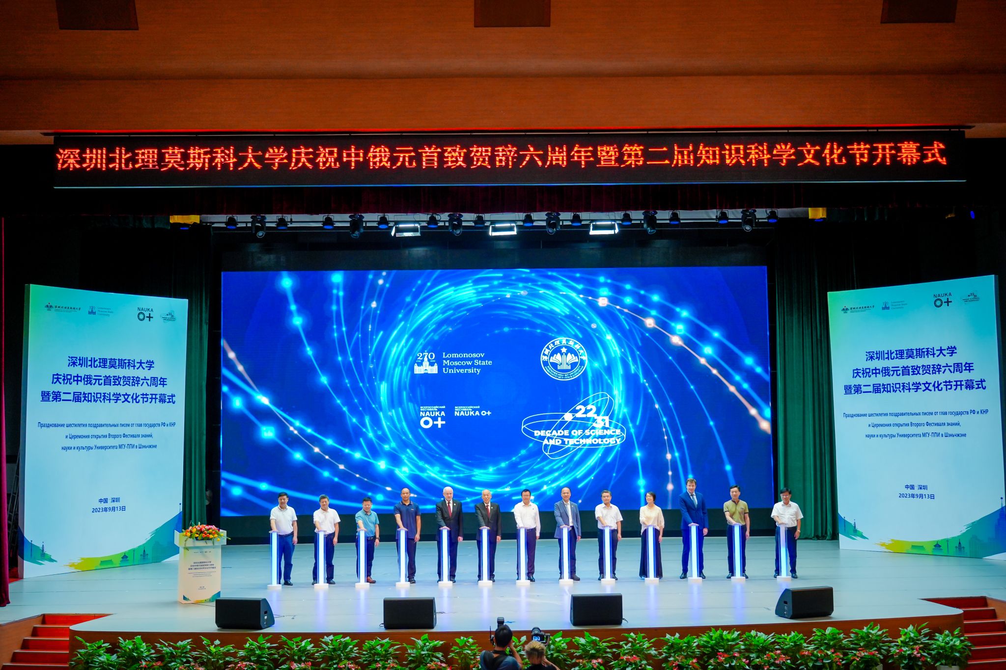 9月13日,深圳北理莫斯科大學在學校禮堂隆重舉行慶祝中俄元首致賀辭六周年暨第二屆知識科學文化節開幕式。