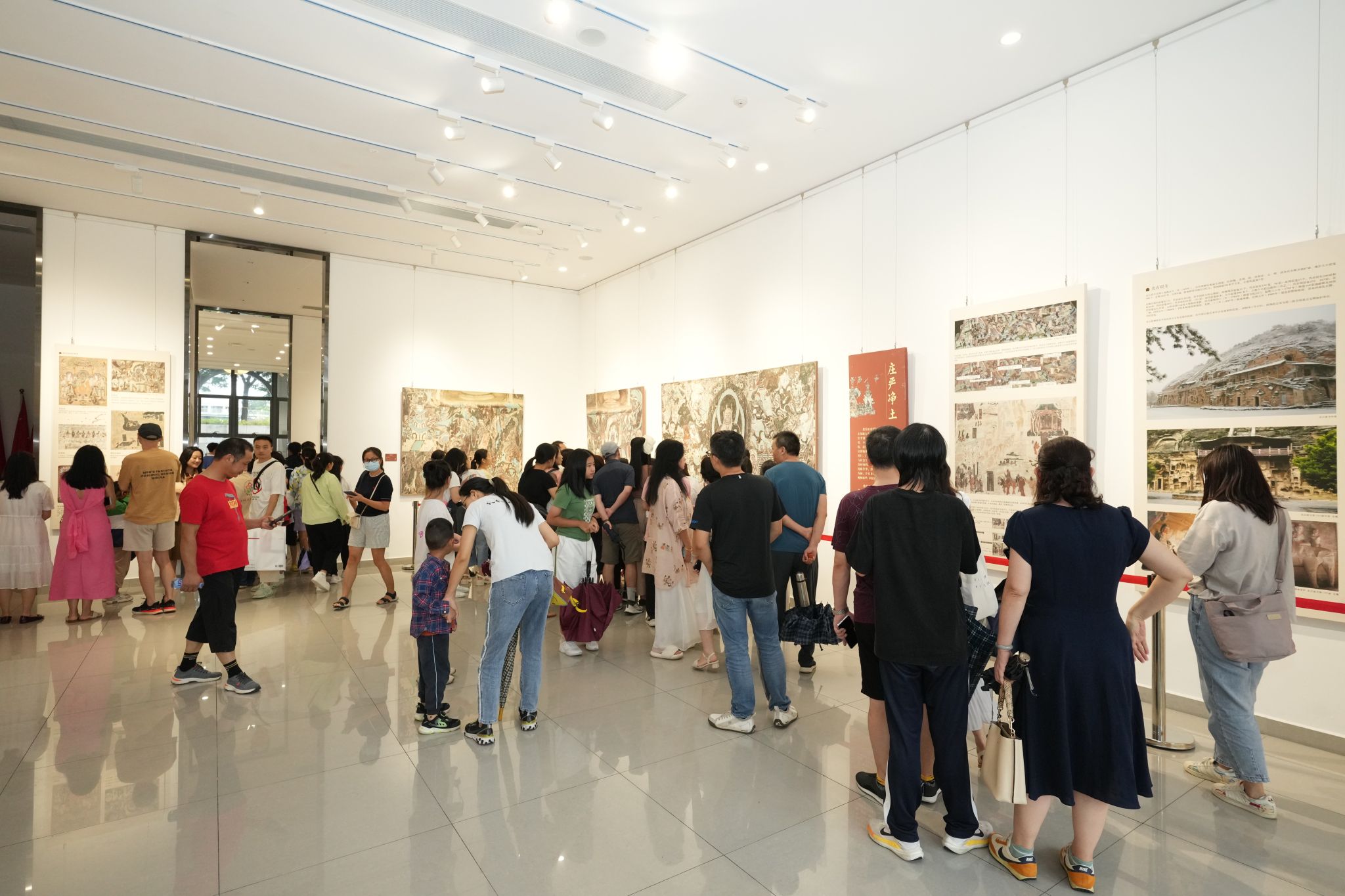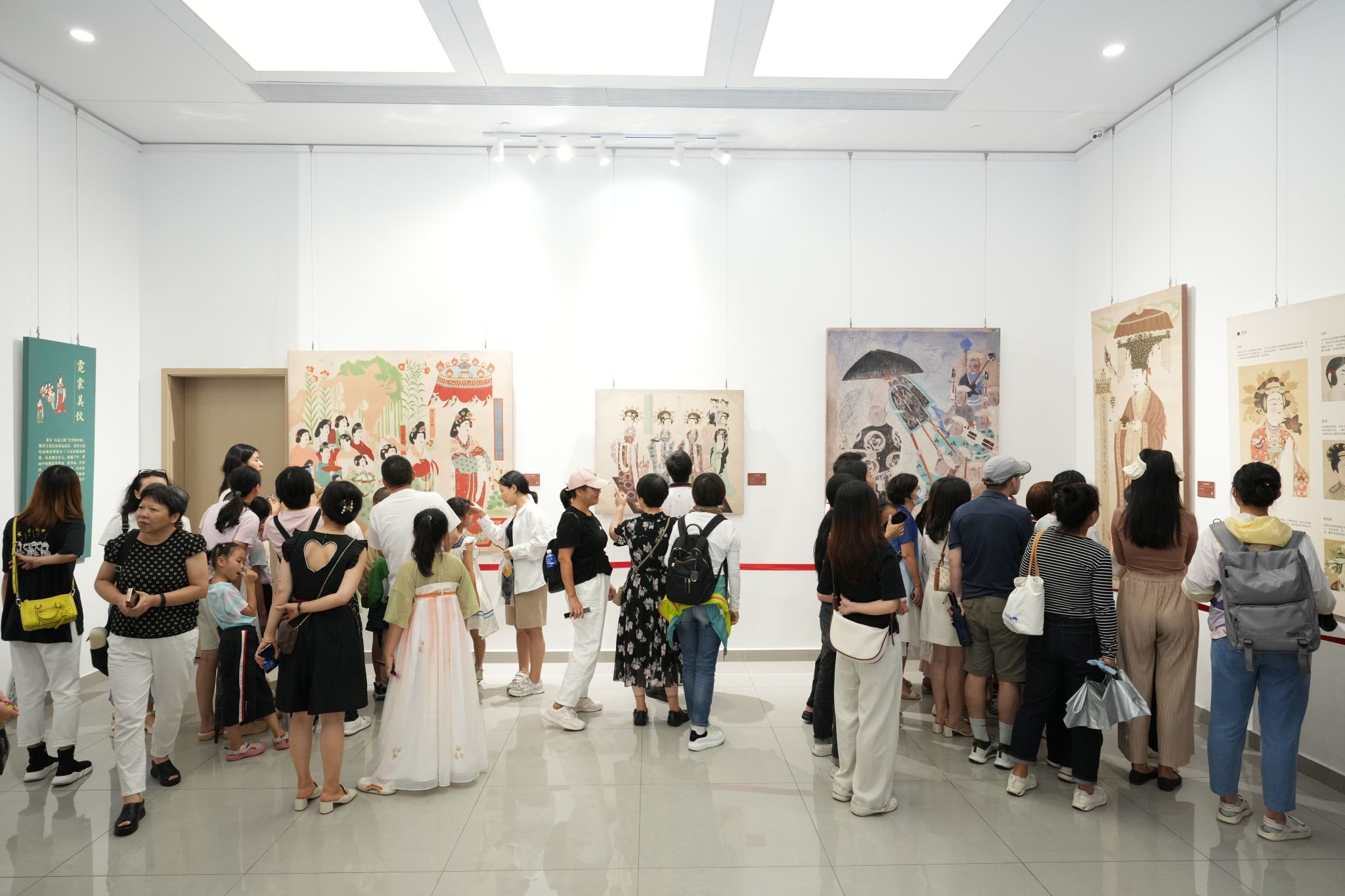 此次《覺色敦煌——敦煌石窟藝術展》精心挑選敦煌石窟經典內容,由絲路漫行、莊嚴佛宮、匠心營造、霓裳美儀、凈土梵音、莫高精神、中俄合作七個單元組成,共展出敦煌石窟經典高保真數字化壁畫復制品50余幅。