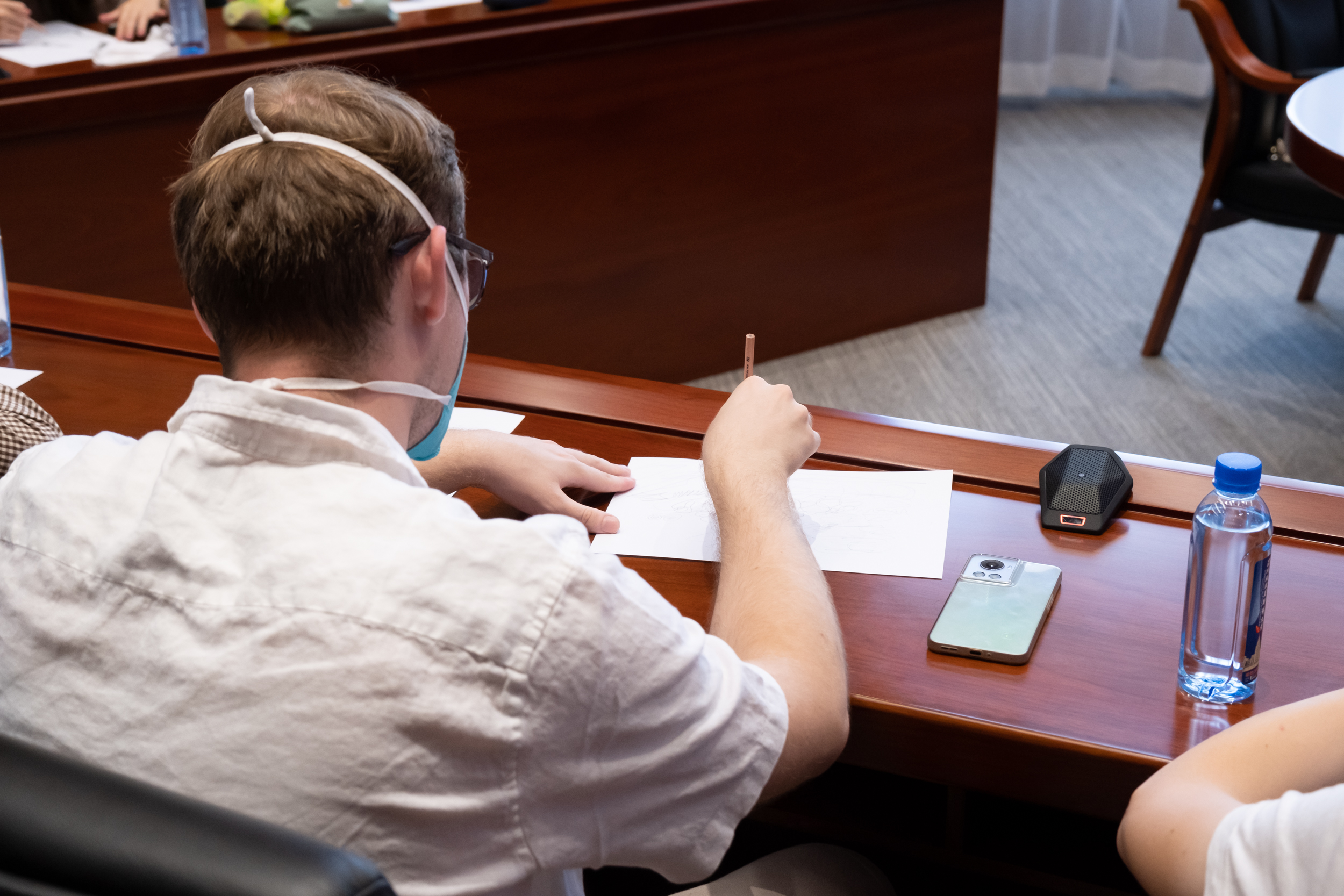 講座中,藝術(shù)家分享了自己的繪畫經(jīng)驗,提出“每個人都可以學習繪畫”,又向觀眾介紹了兩種主要的繪畫類型,其中一種為“自發(fā)繪畫”,他認為這種繪畫形式幾乎可以用于所有人。隨后現(xiàn)場聽眾在大師課上直接進行了繪畫創(chuàng)作,并展示作品以供藝術(shù)家解說。最終列奧尼德·費奧多爾得出結(jié)論,“每個人都有創(chuàng)作的火花,可以通過強烈的愿望和勤奮努力發(fā)展為人才!”。